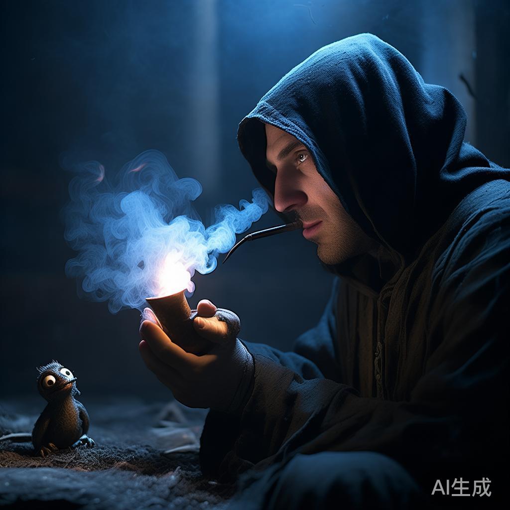 孤独地坐在幽暗的井底,他感到无边的绝望。但就在这时,他下意识摸向口袋,竟发现烟斗中还有一丝烟丝。“这是我最后的享受。”他自言自语道,借着蓝灯的火焰点燃,鲜亮的烟雾缭绕而起,就在他以为自己将被遗忘时,一个小小的身影出现了,脸庞黝黑的小人物向他询问需要何种帮助。