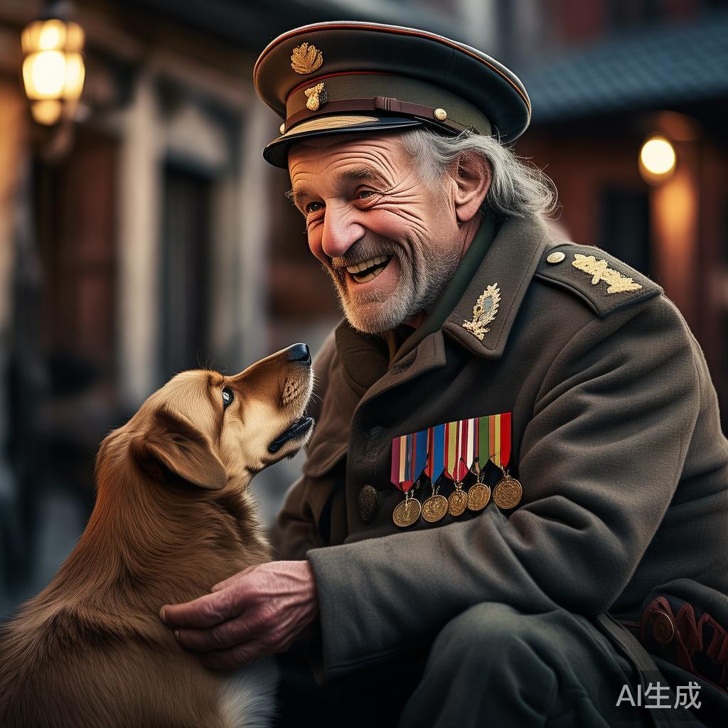 “你该适可而止了,要不然眼睛会坏掉的。”士兵笑眯眯地对狗说,并又一次将其抱起,接着把更多零钱揣进口袋。