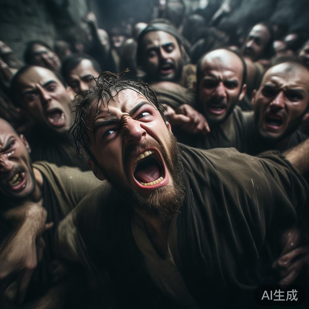 “这家公司快要将他逼疯了!”呼喊响起,四周的人齐声控诉。其他犯人试图拉扯他,把他束缚。就在这时,牧师伸手欲助,却感受到无力。他的呼唤陡然变得苍白无力,眼泪汹涌而出,如甘泉流淌,滋润着这颗被烈火炙烤的心灵。