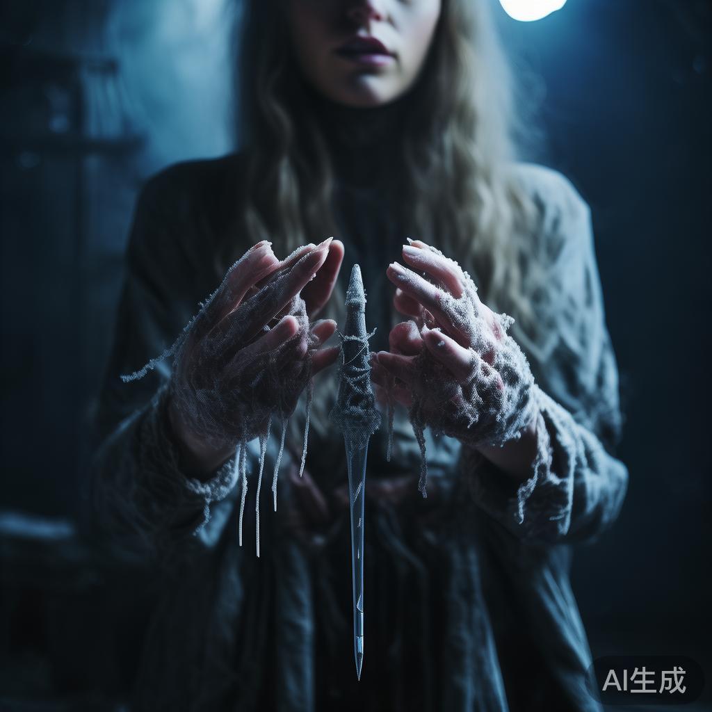 她开始弹奏,那姿态显得无比恐怖——尽管仅视手掌浸于幽暗与寒霜,长长的手指就仿佛地狱的拷问过程,每个指头上都有工具。拇指与食指是刀及螺丝刀,中指带着尖锥,无名指则是钻,小指附有蚊子毒液。
